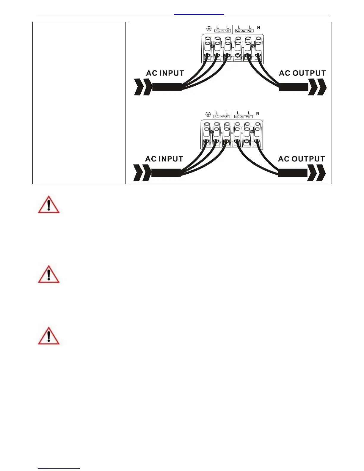 For split phase models, AC input neutral is not required in wiring. Never Connect Input Neutral to