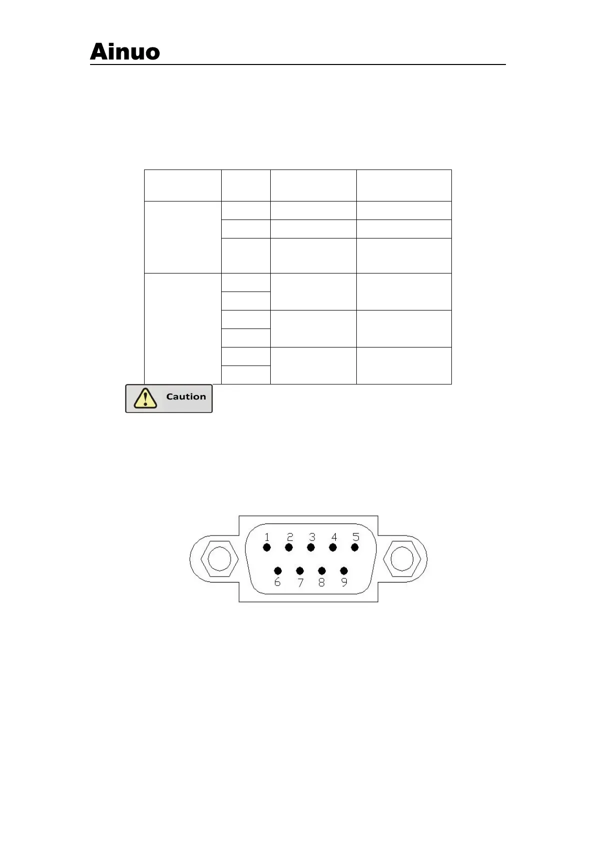 Use DB9 socket (male), matching Ainuo barcode scanner, asshown in Figure 5-4-1.