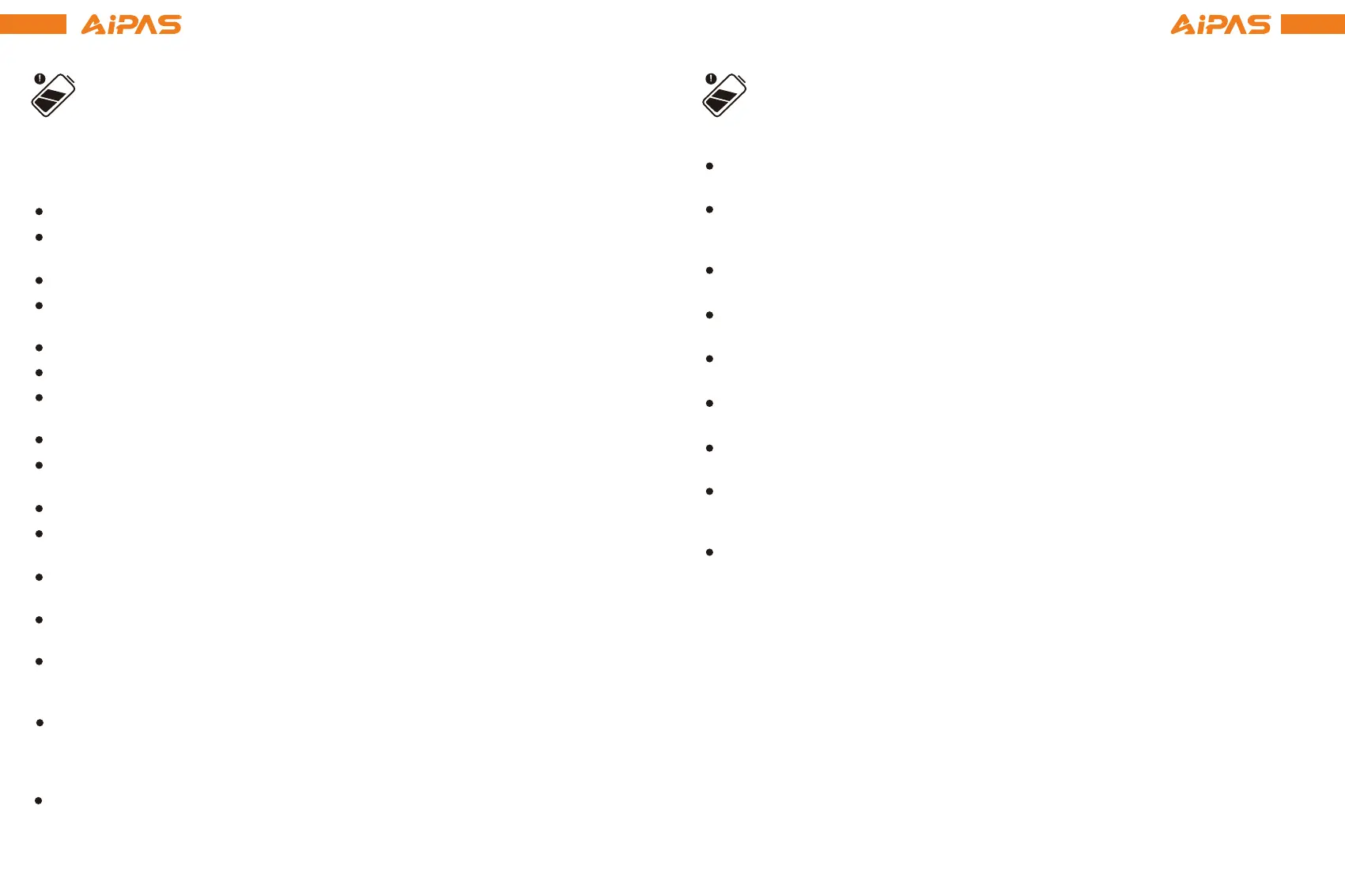 Do not charge the battery with chargers other than the charger provided by Aipas eBikes.