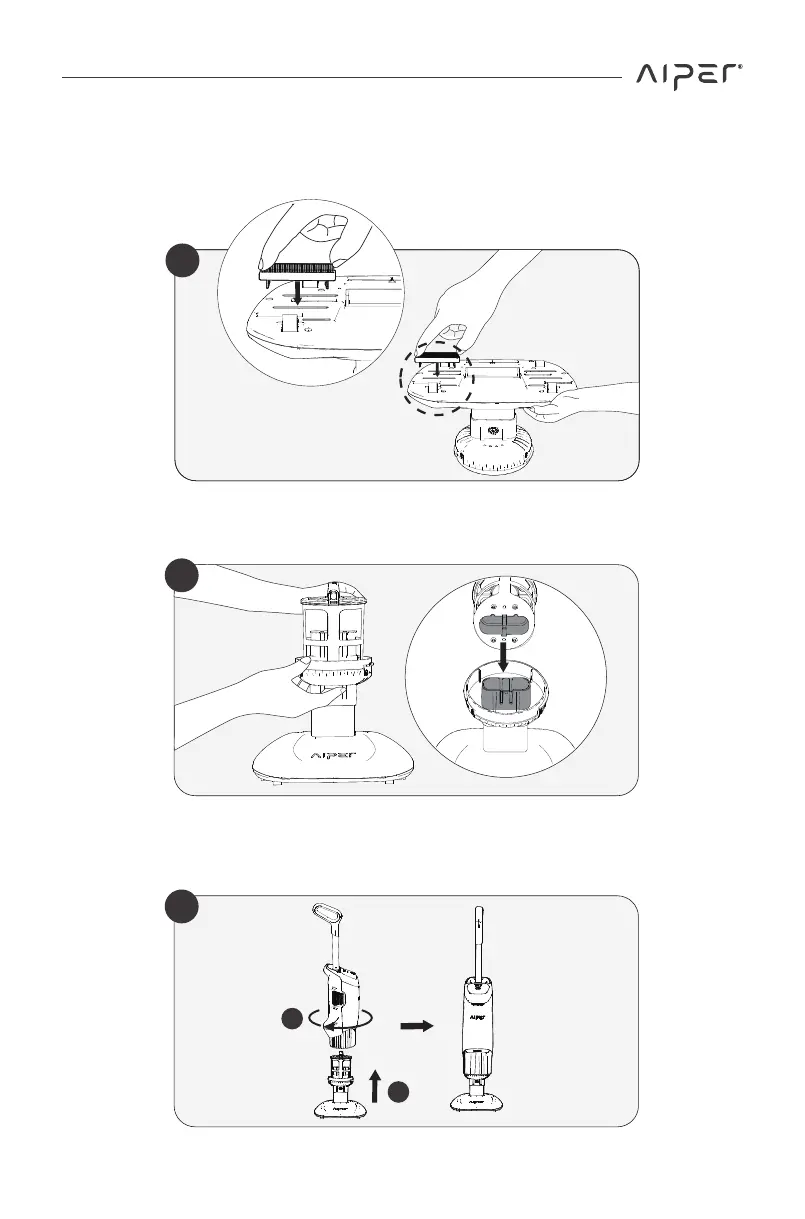 e. Tighten and secure the front dustbin to the floor brush base and
