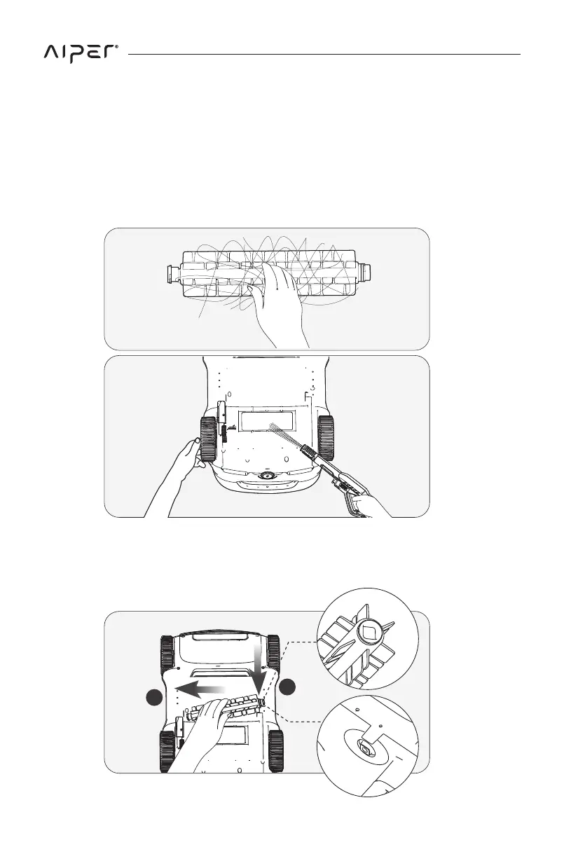 c. After removing the roller brush, clean any debris tangled in it and