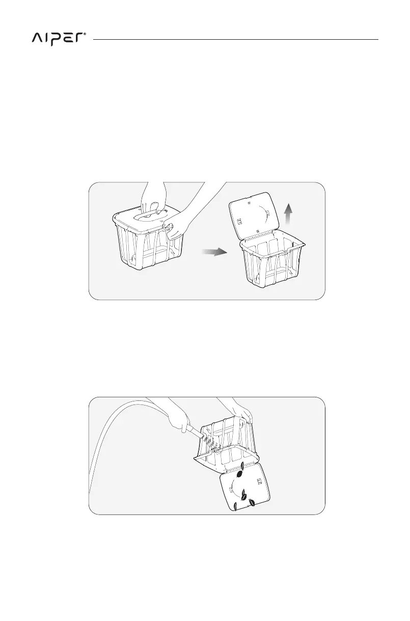 c. Appuyez sur le loquet de la coque supérieure du panier de filtre, et