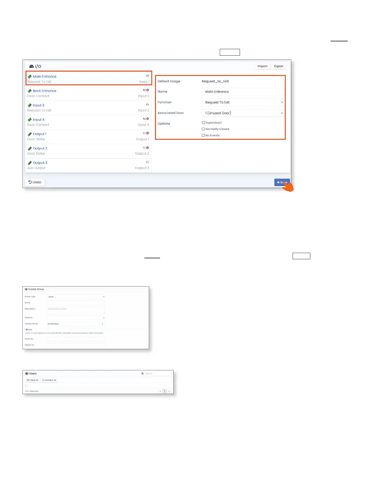 Once the door is congured, the door's inputs and outputs must be programmed. To congure these, navigate to Hardware, Panels.