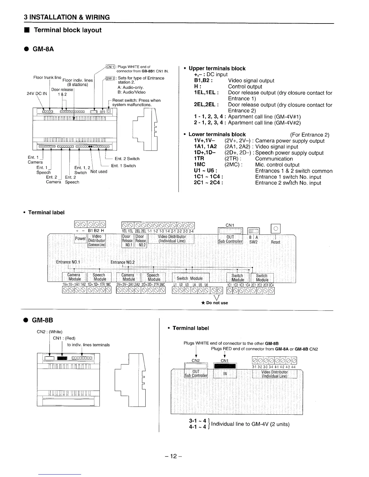 Aiphone GM Series - Terminal Block Layout; Upper Terminals Block; Lower Terminals Blocks