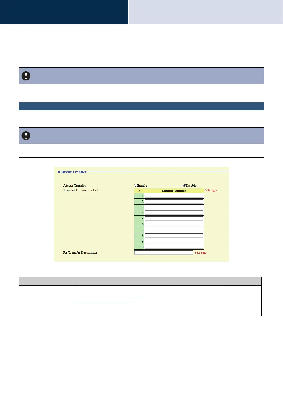 Absent Transfer Configure whether to set absent transfer. This