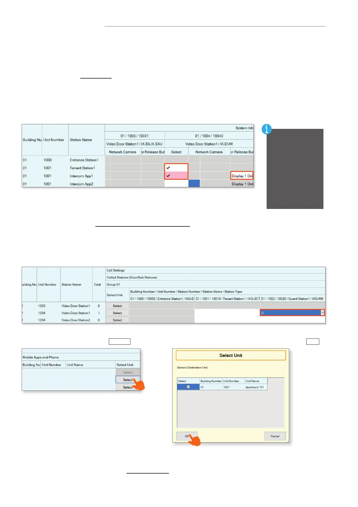 Stations placed in di󰀨erent units are not automatically congured to call one another. These settings control which