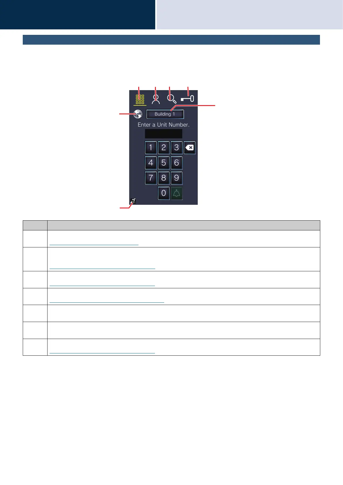 Tap to display the Call by Unit Number Screen (this screen). Enter the Unit Number to call the person to visit.