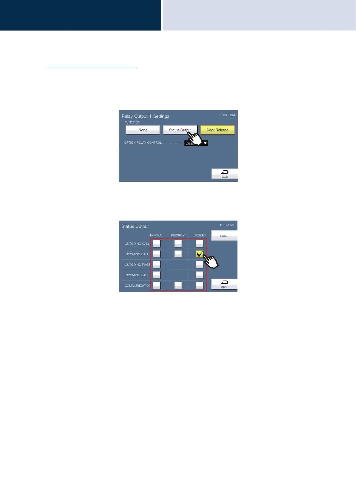 2. Tap [Status Output] on the Relay Output Settings (Advanced) screen.