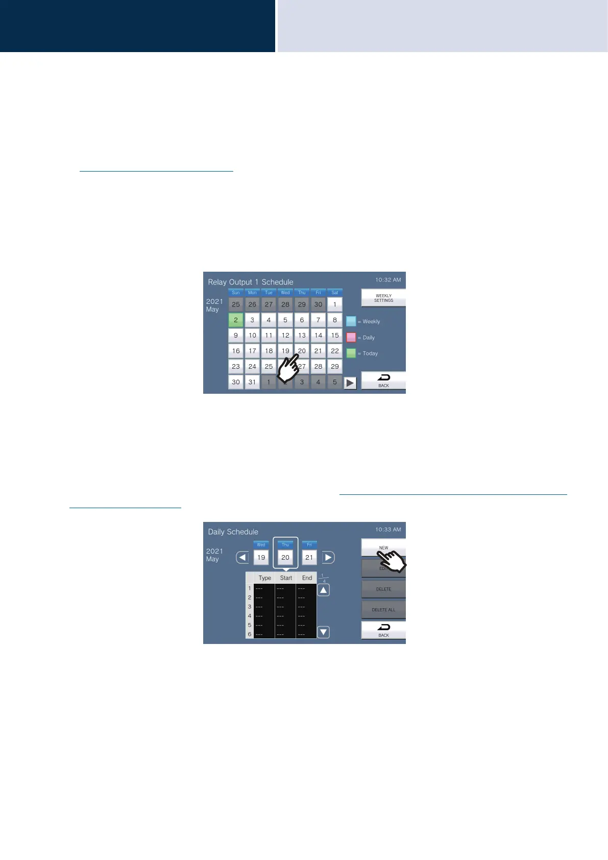 * Change or delete "Weekly" type schedules as described in “How to configure Relay Output Schedule (Weekly
