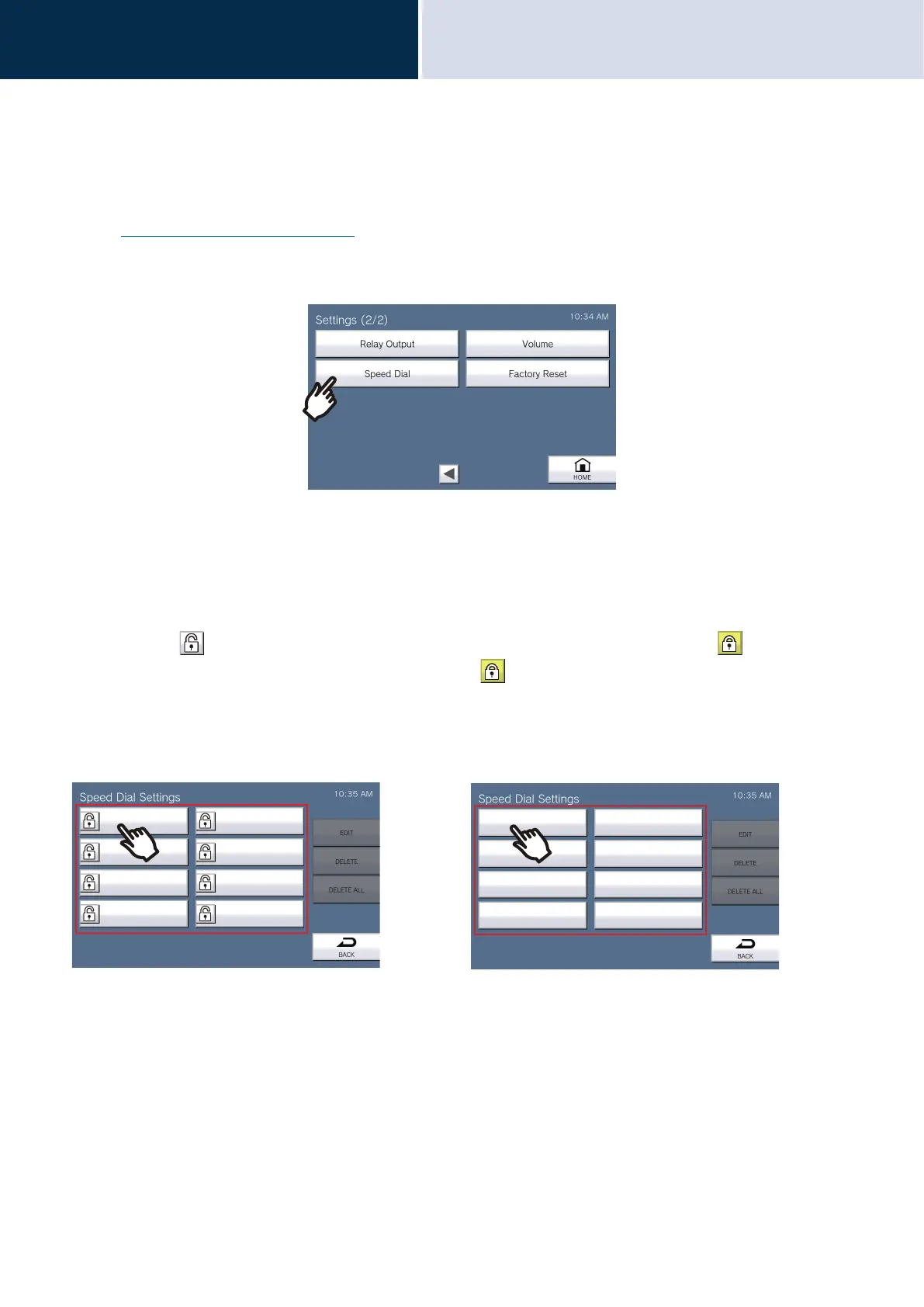 *Touching next to a Speed Dial button under administrator privileges will change it to , preventing the
