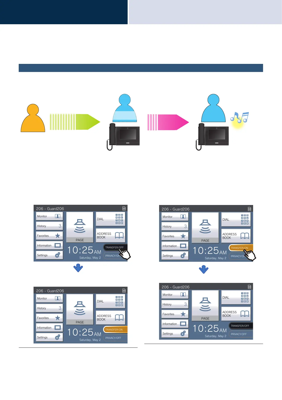 Activate absent transfer to have incoming calls sent to another station while away. This may not be used depending