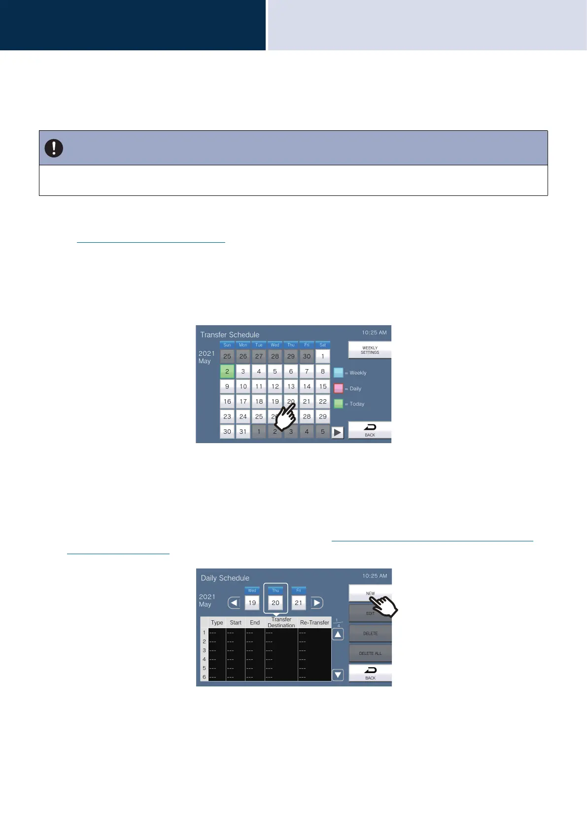 Set the transfer destination and time for schedule transfer for each day. A schedule one year from the set day can be