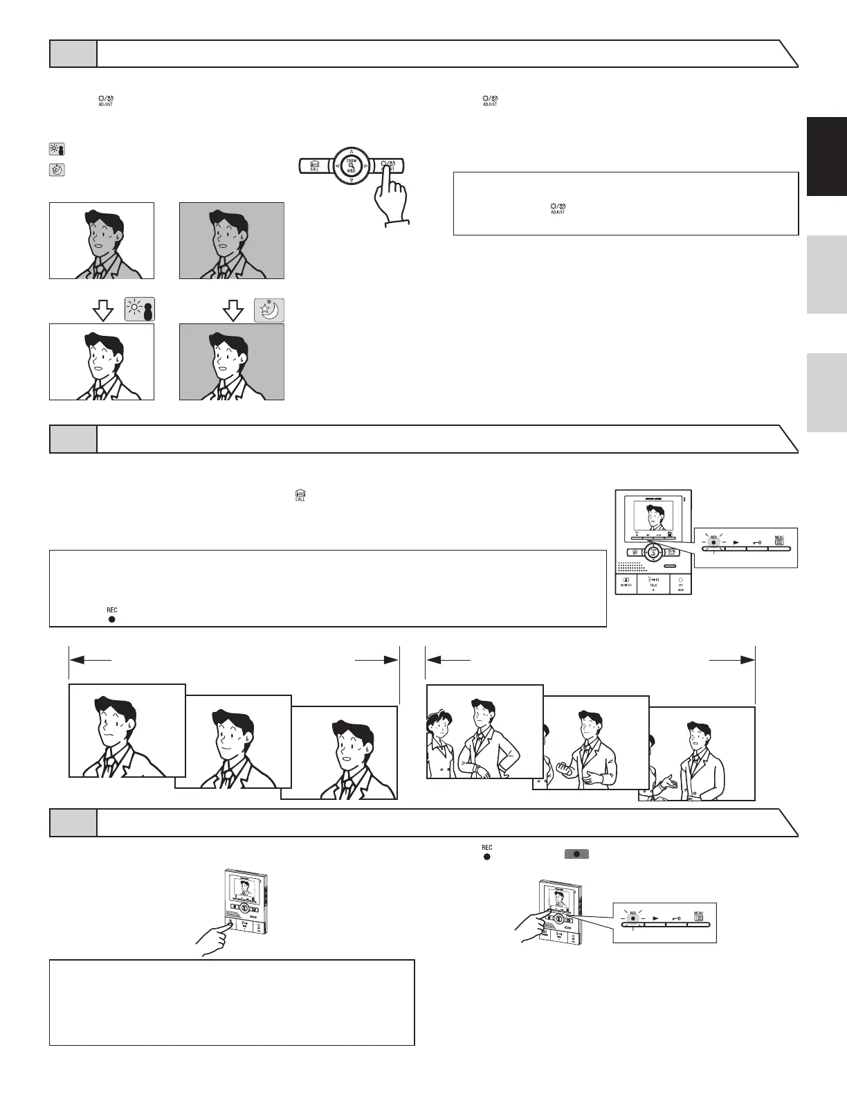 3. The picture during entrance monitoring is not automatically recorded. If you wish to record this screen, press