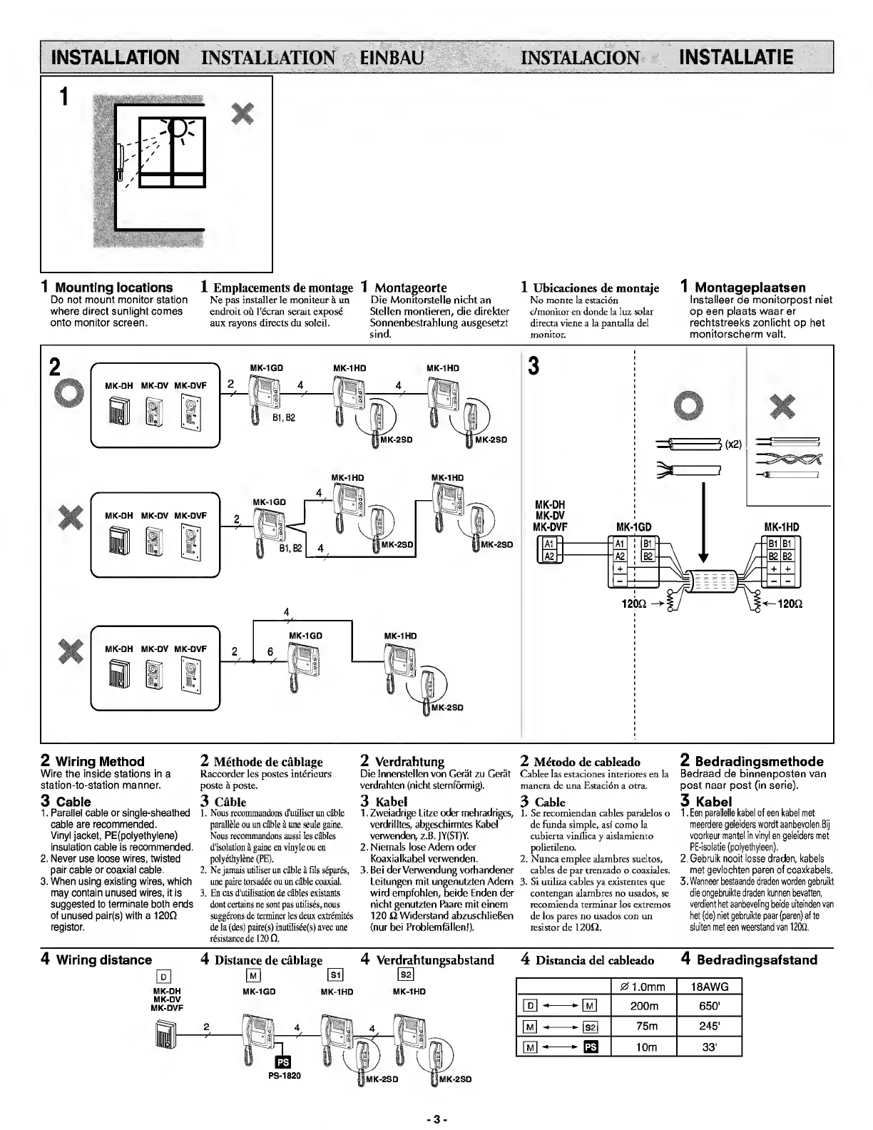 Aiphone Mk-1gd - Installation and Wiring Guidelines; Mounting Location Precautions; Wiring Method and Cable Types; Wiring Distance Specifications