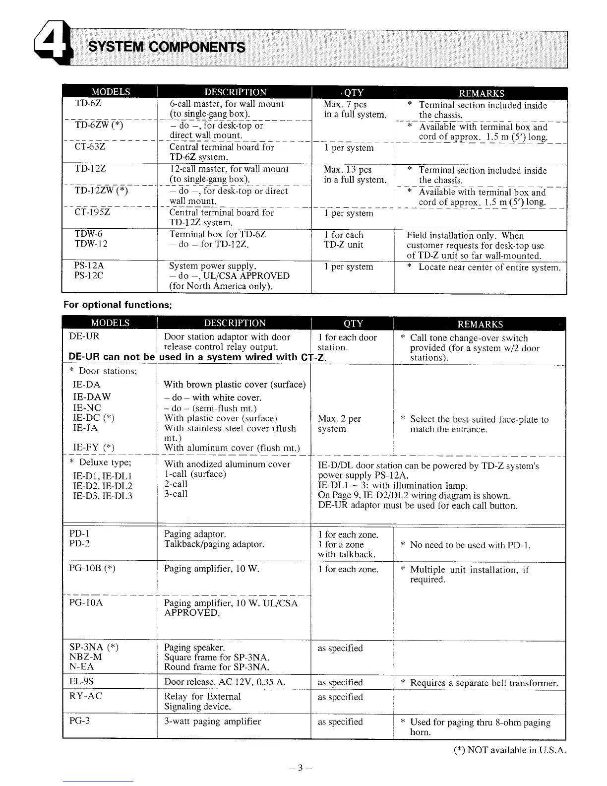 Aiphone TD-12Z - System Components