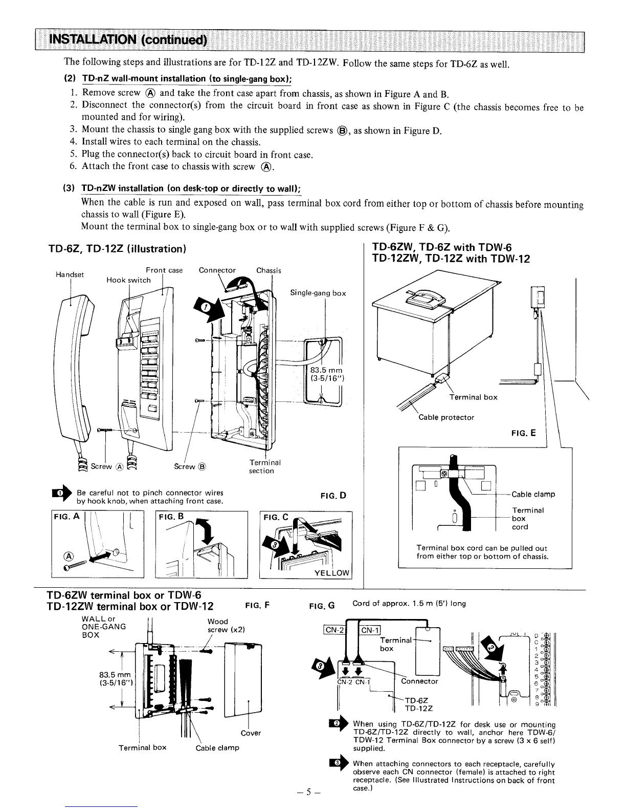 Aiphone TD-12Z - Wall-Mount Installation (to Single-Gang Box); Installation on Desk-Top or Directly to Wall