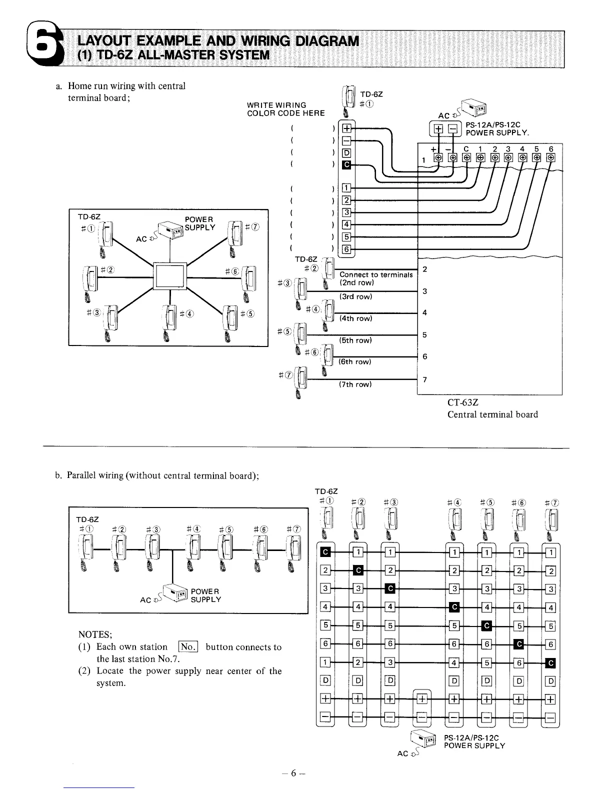 Aiphone TD-12Z - Layout Example and Wiring Diagram; All-Master System Diagram; Parallel Wiring (Without Central Terminal Board)