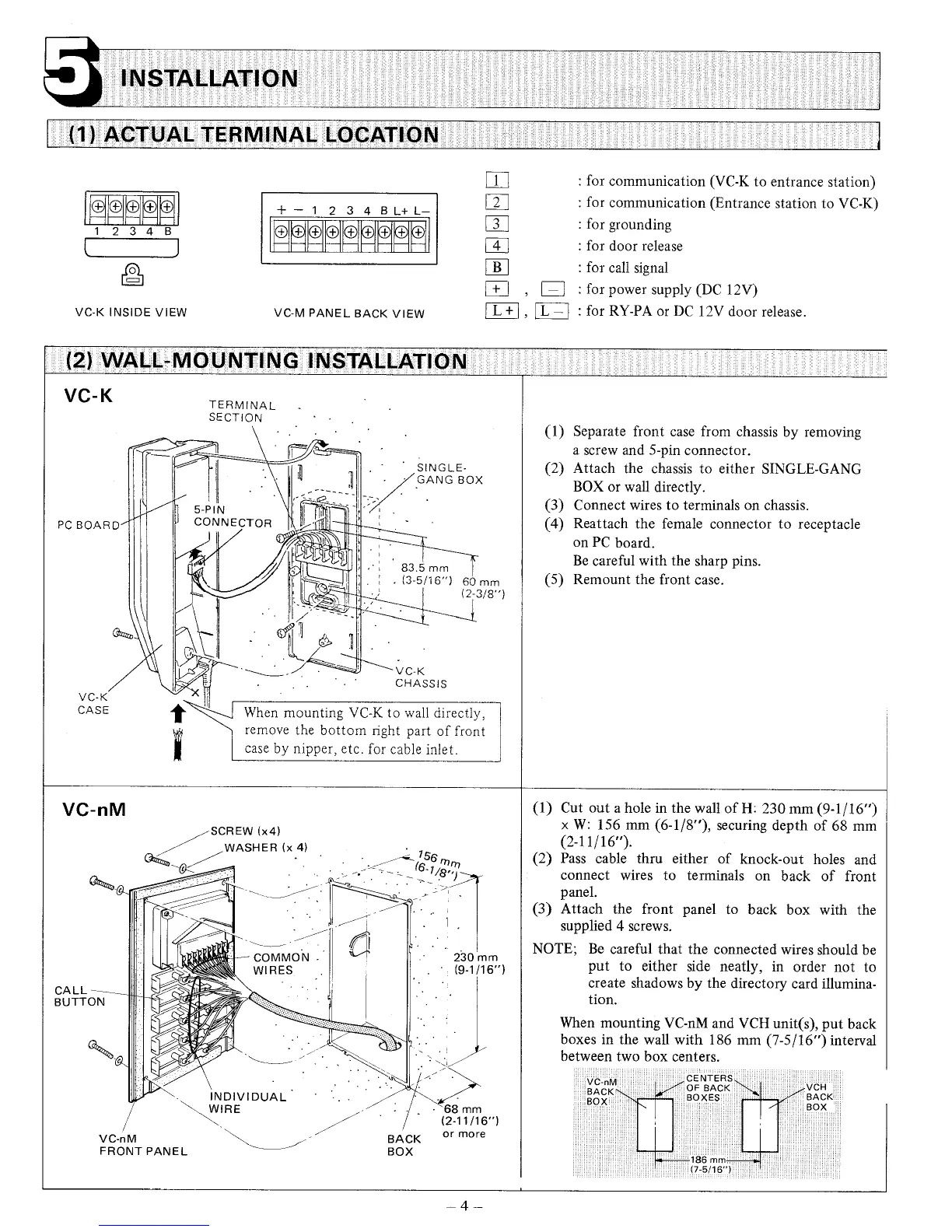 Aiphone VC-10M - Installation; Actual Terminal Location; Wall-Mounting Installation
