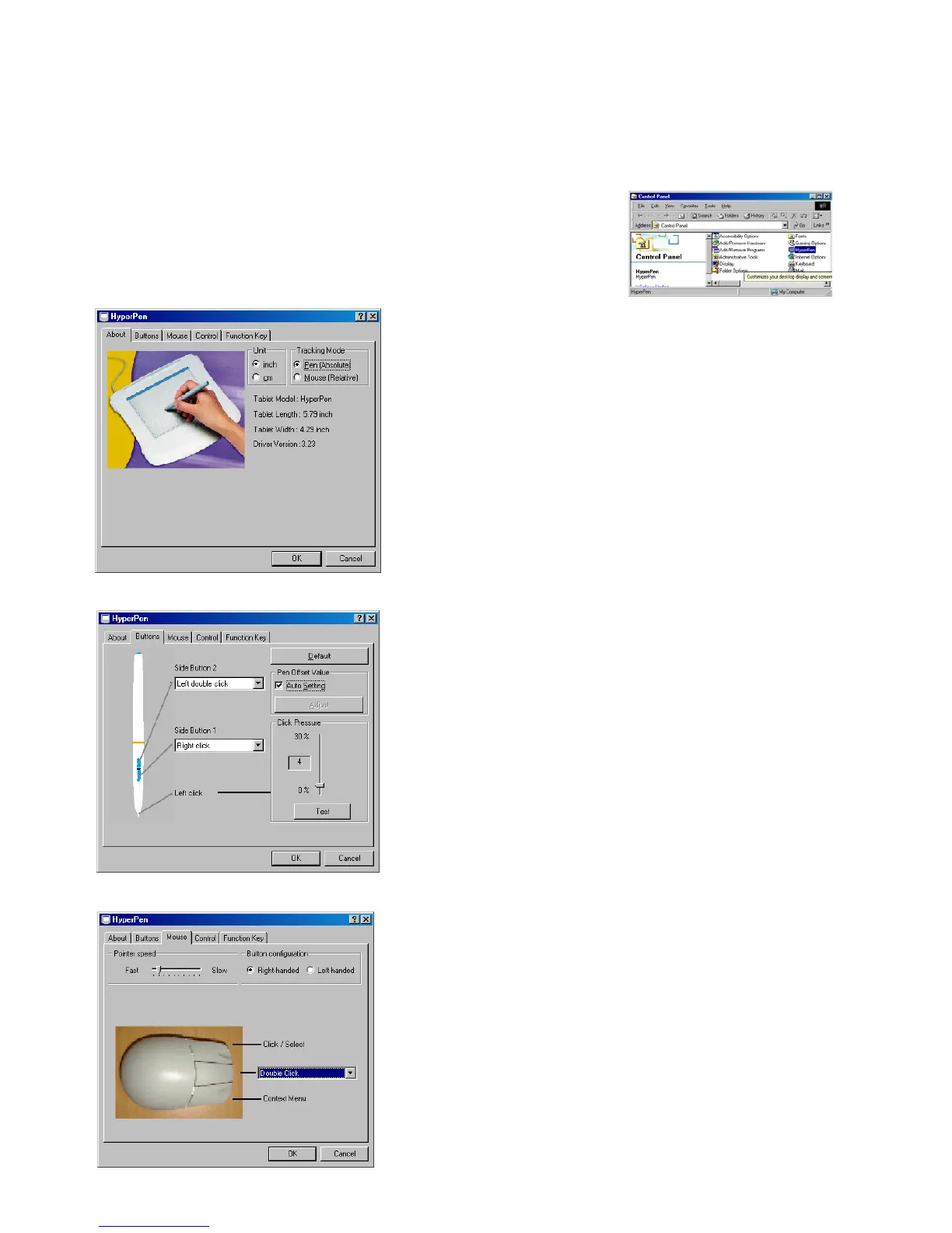 Click Start>Settings>Control_Panel> and locate the HYPERPEN icon as shown on the right.