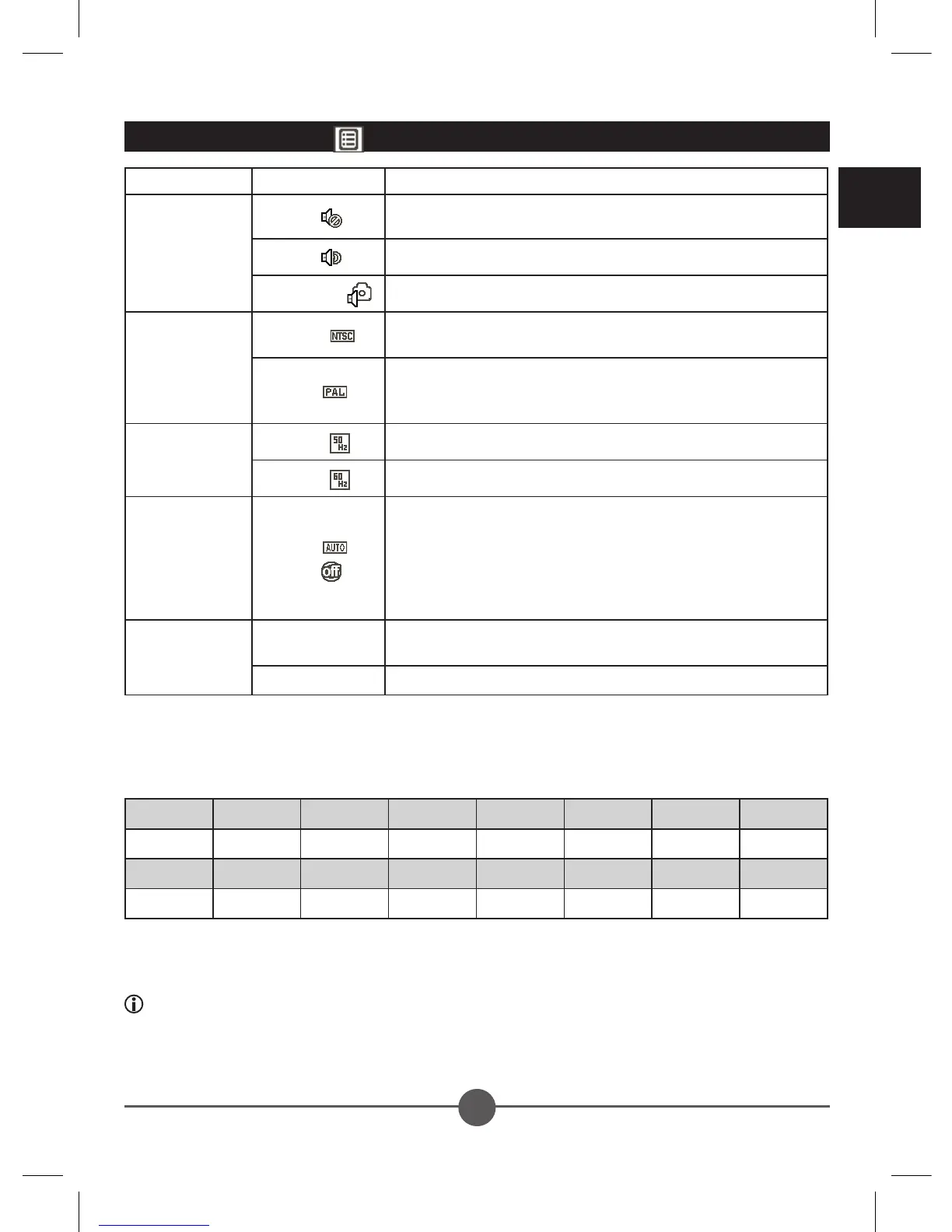 Setting 50Hz 60Hz 60Hz 50Hz 50/60Hz 60Hz 50Hz