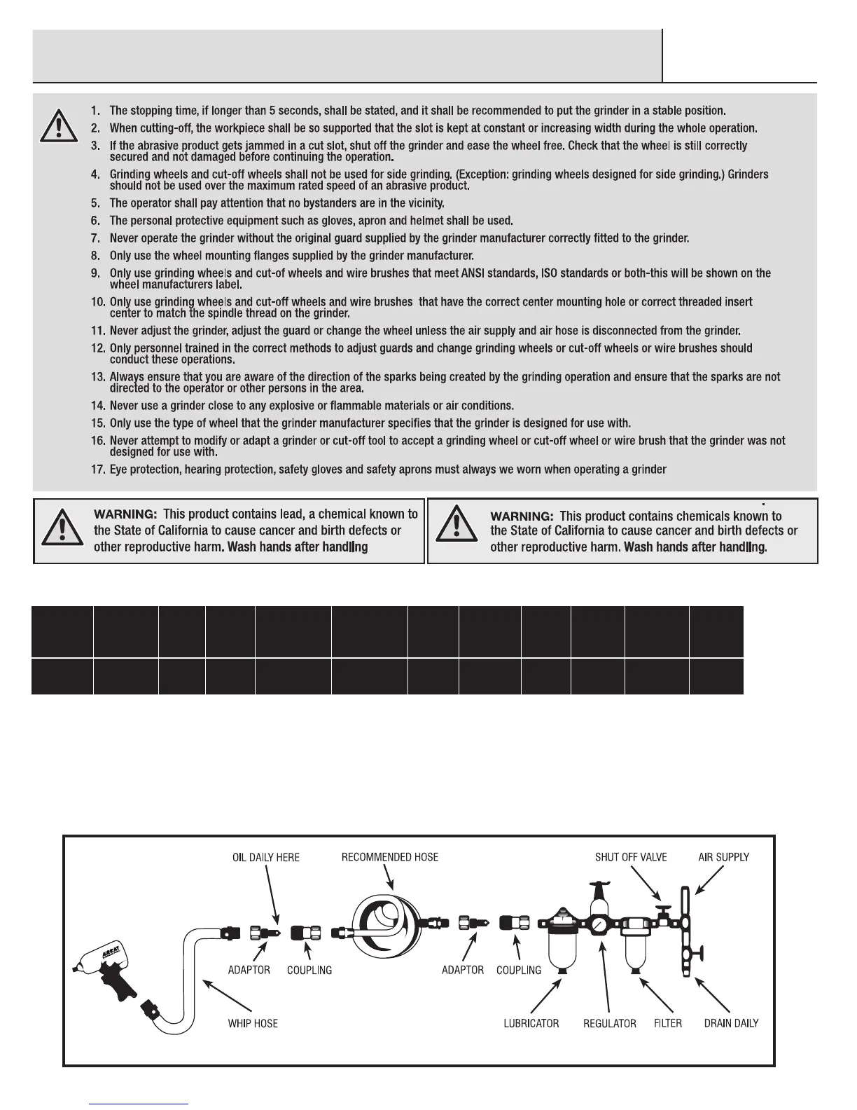 pressure and unclean air will shorten the tool’s life because of faster wear and may create a hazardous condition and void the warranty. Water in the air line will