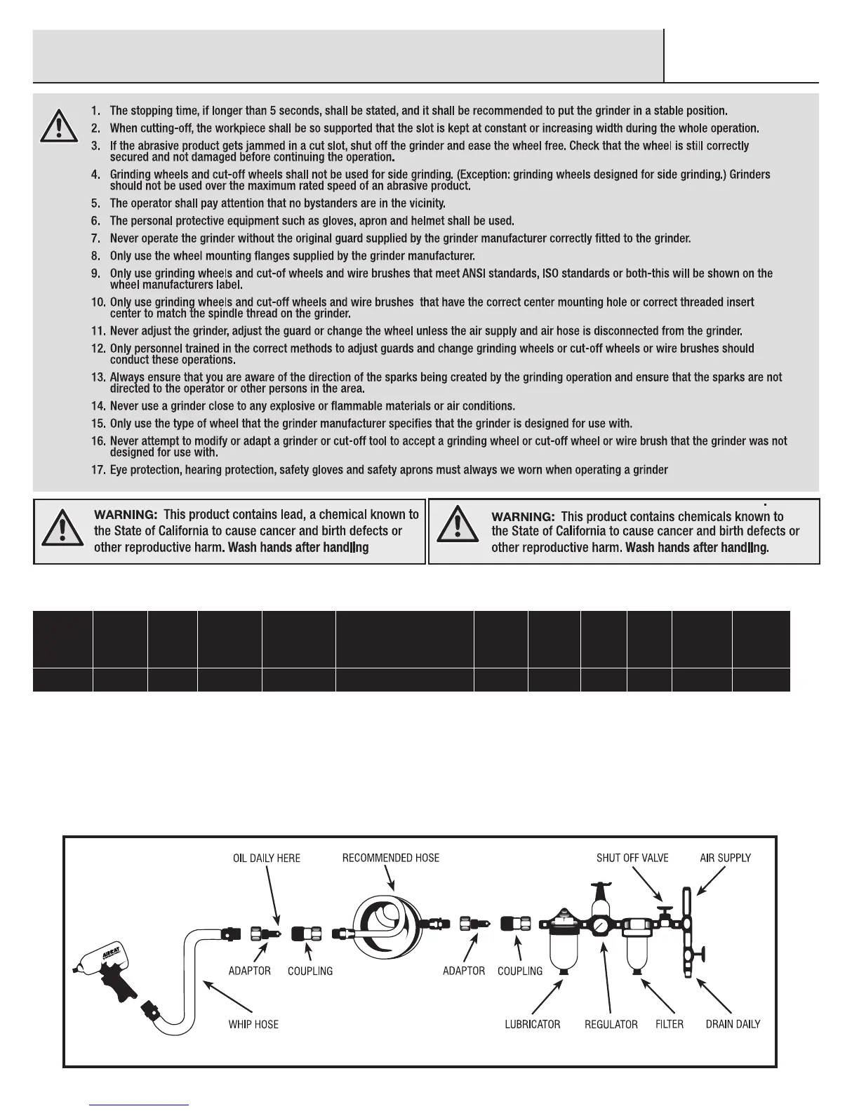 pressure and unclean air will shorten the tool’s life because of faster wear and may create a hazardous condition and void the warranty. Water in the air line will
