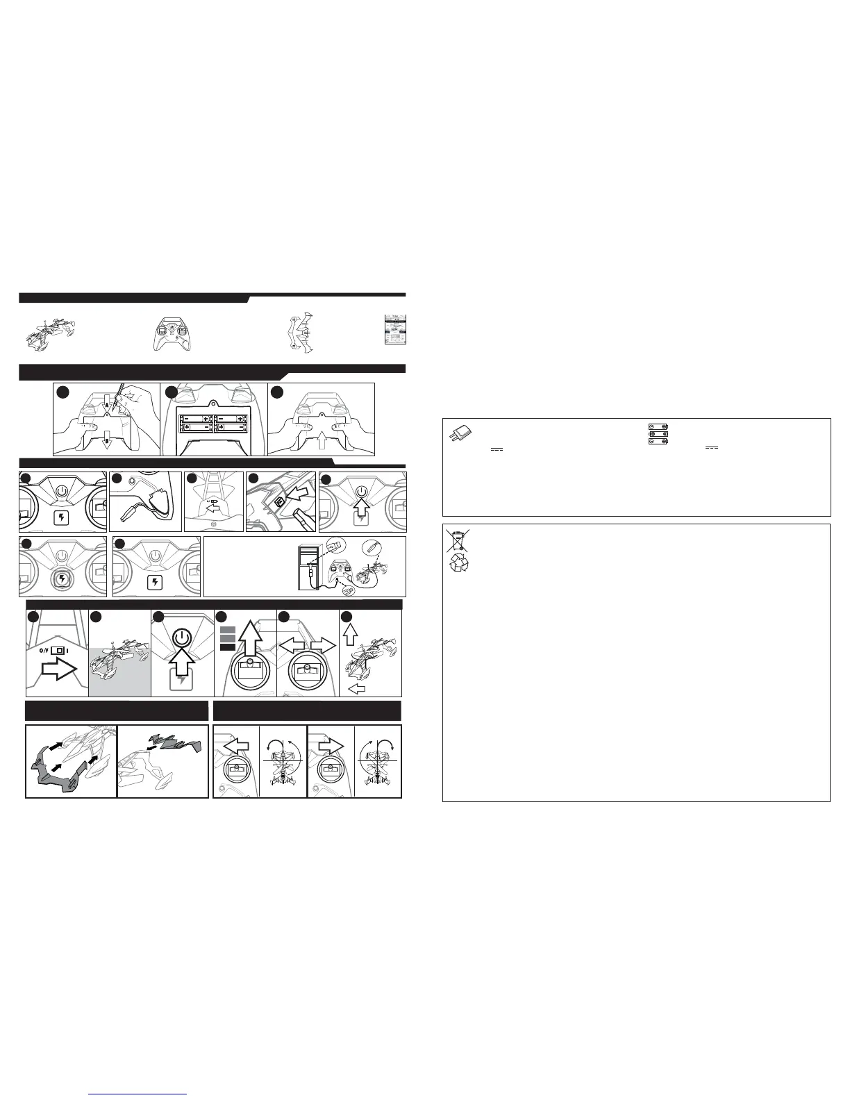 hélices lorsque le jouet est en marche. - Éteindre la radiocommande et le jouet en cas d'inutilisation. - Retirer
