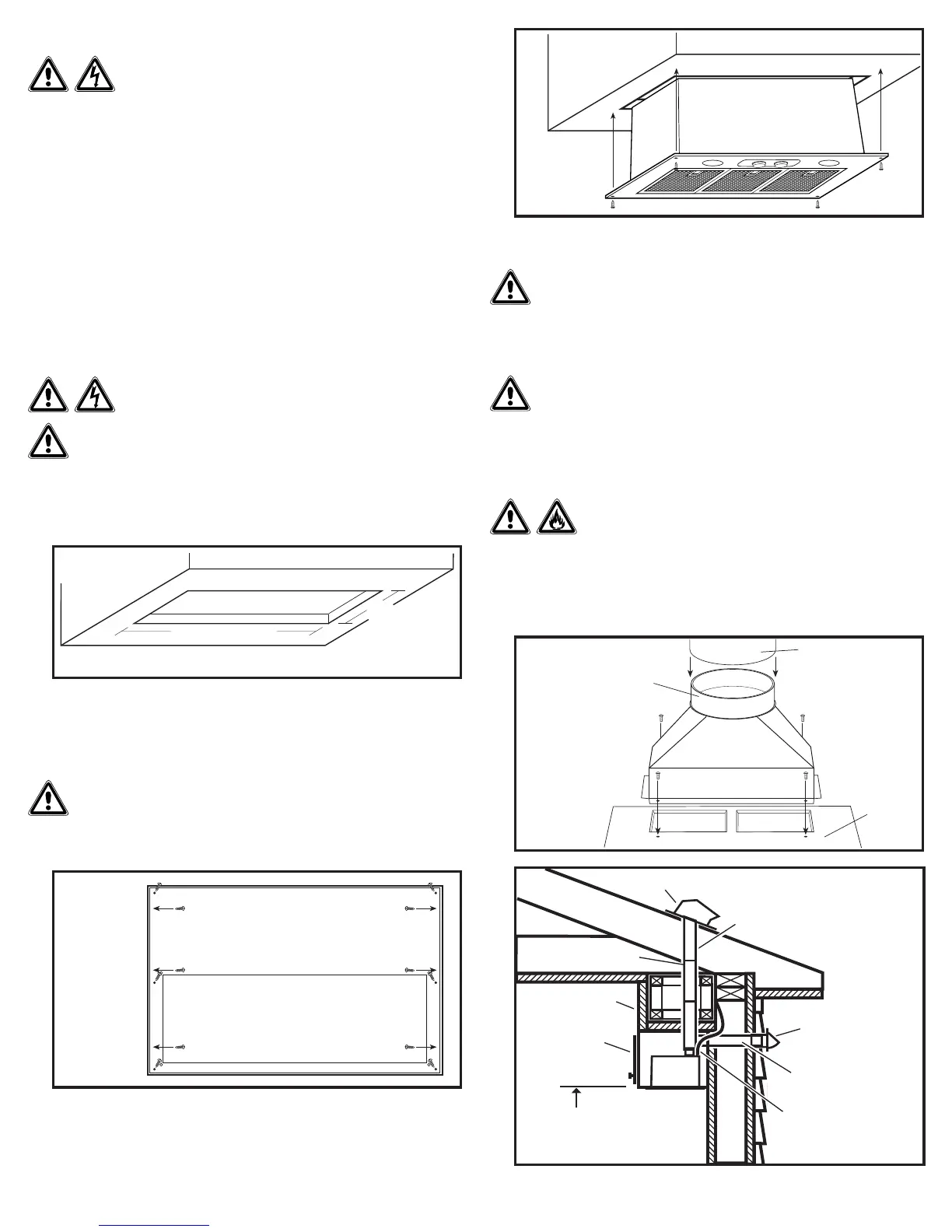 NOTE: The hood must be mounted a minimum of 24” and a maximum of 36” from the