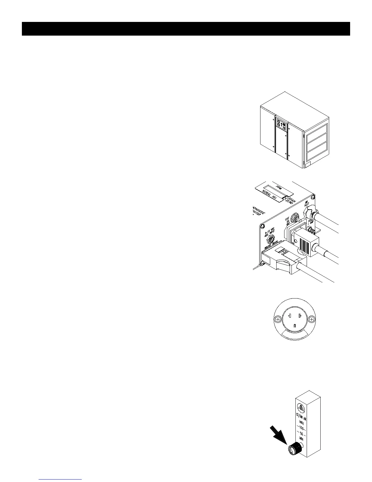 remote signal cable, 115 VAC plug, and air sample hose to the monitor. Place the
