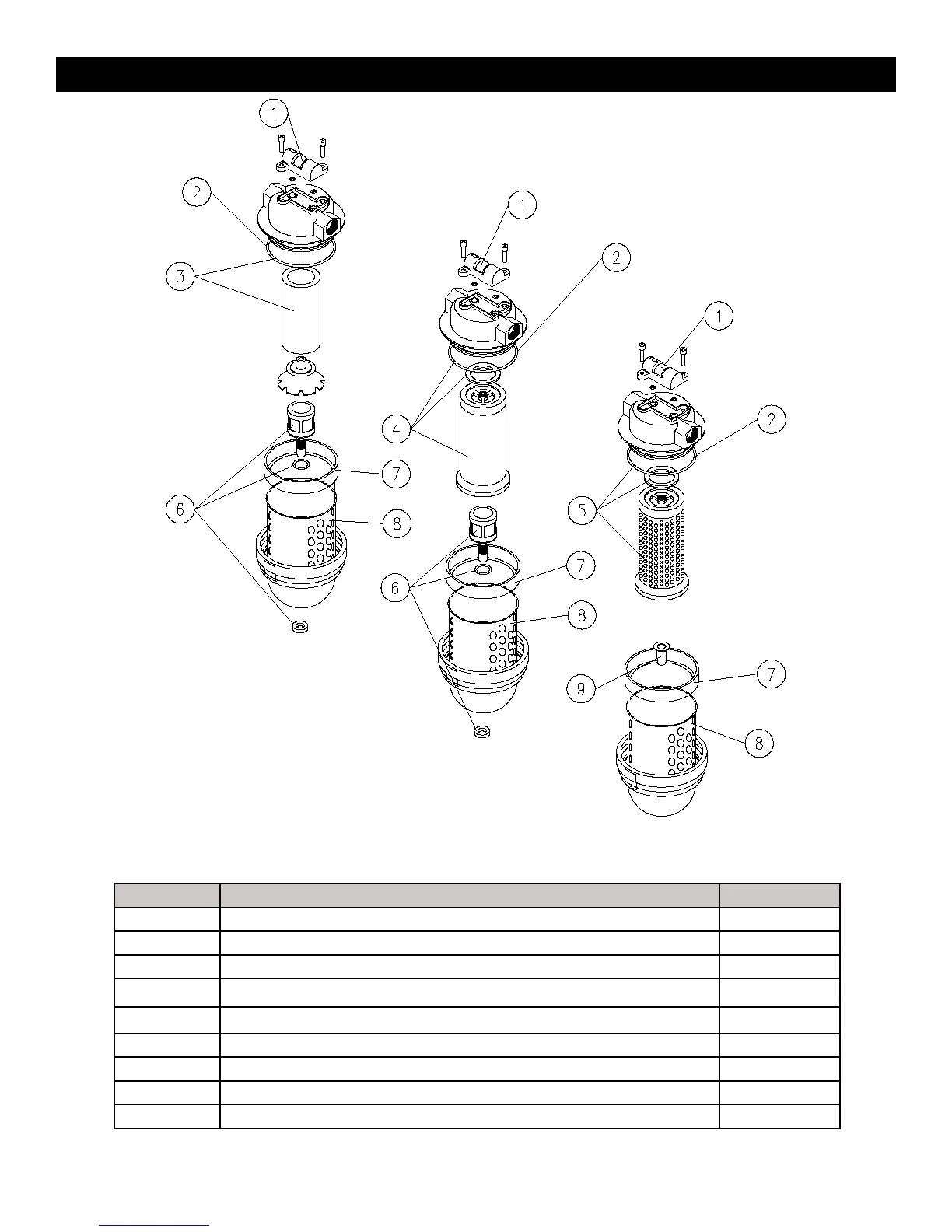 Models BB100-COPM and BB150-COPM Filter Breakdown