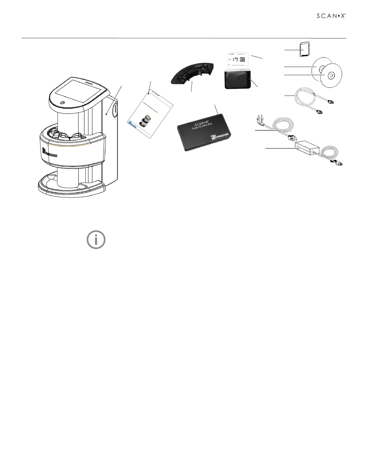 Unpack each component of ScanX and inspect for physical damage such as scratched panels,
