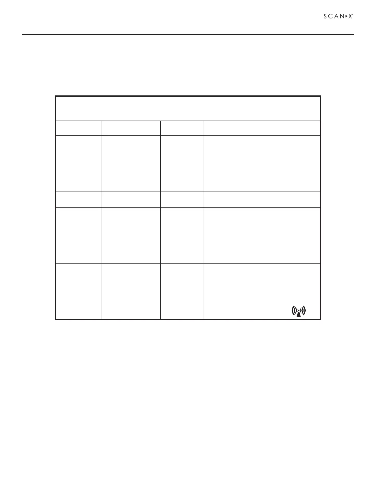 plicable RF compliance level above, the ScanX should be observed to verify normal