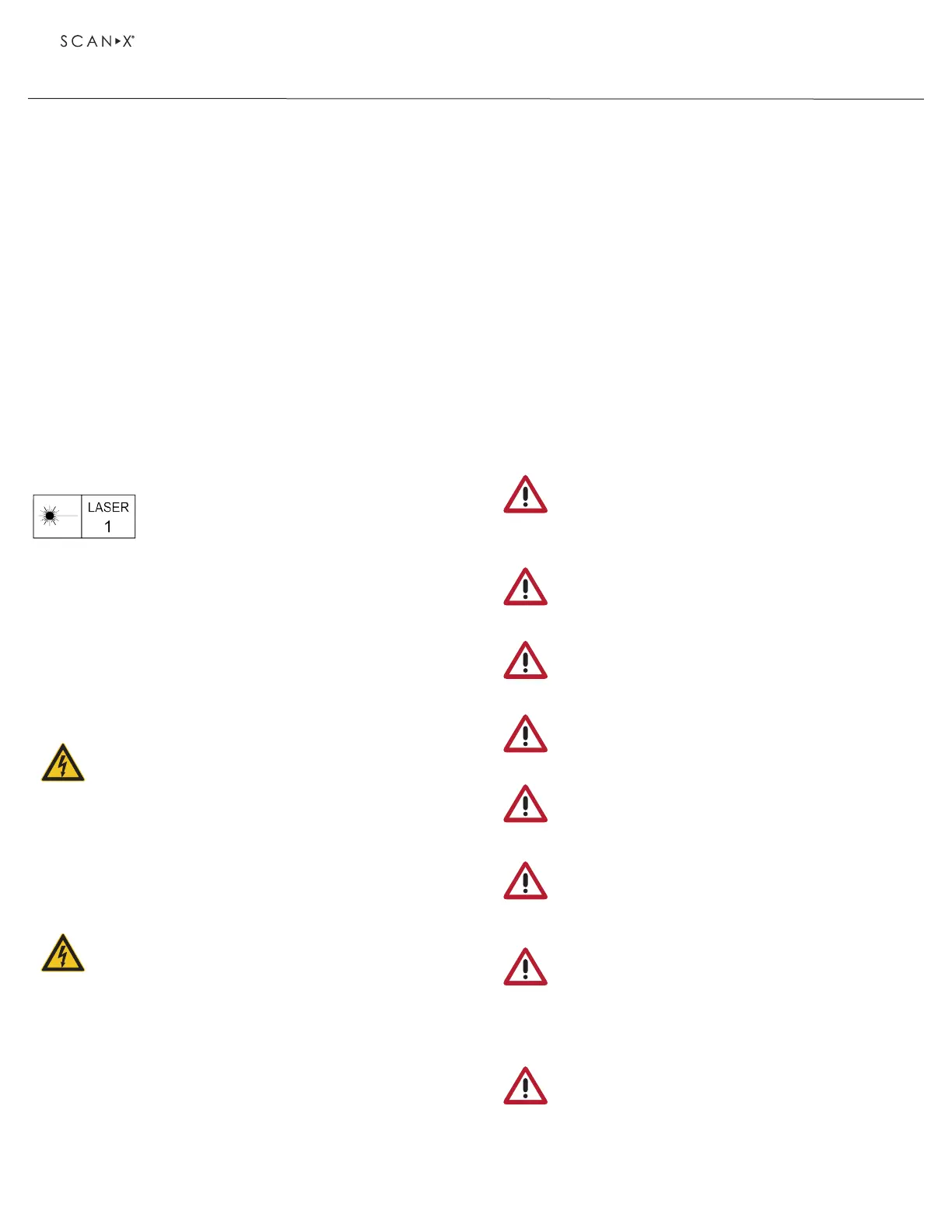 • ScanX contains a laser and is a Class 1 [Class