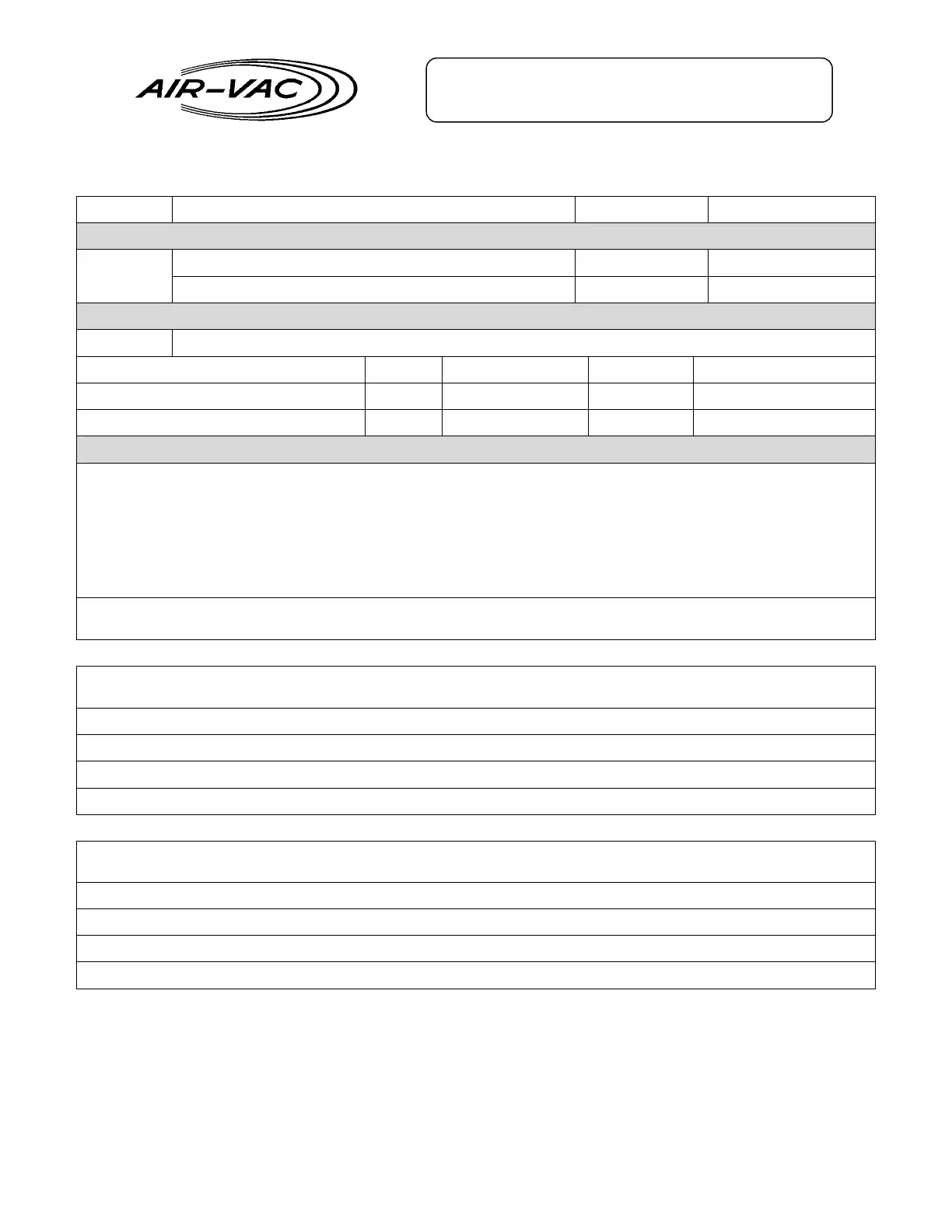 Air-Vac Representative Signature/Date: