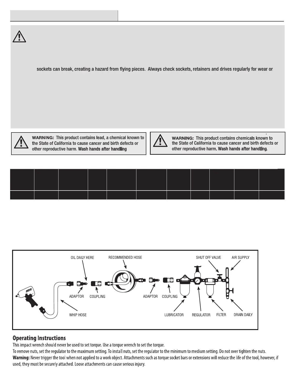 3. Use only impact sockets and accessories. Only use sockets designated “FOR USE WITH IMPACT WRENCHES”, hand tool