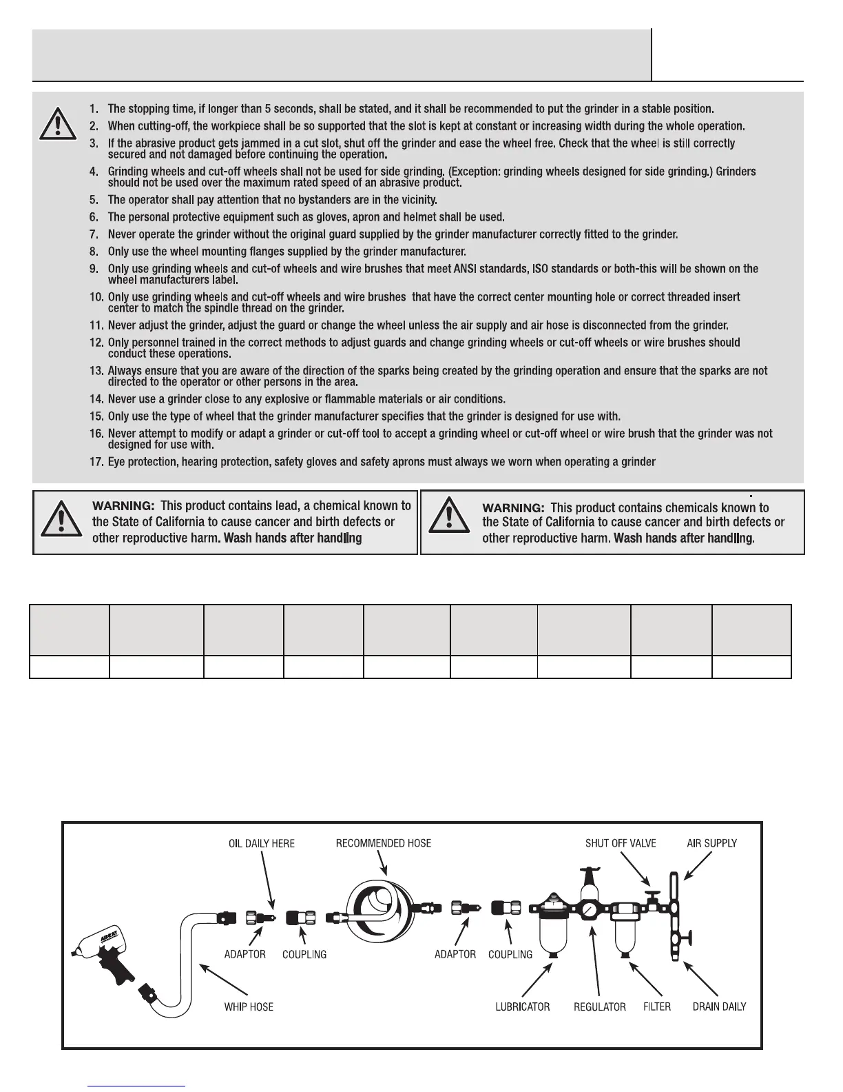 pressure and unclean air will shorten the tool’s life because of faster wear and may create a hazardous condition and void the warranty. Water in the air line will