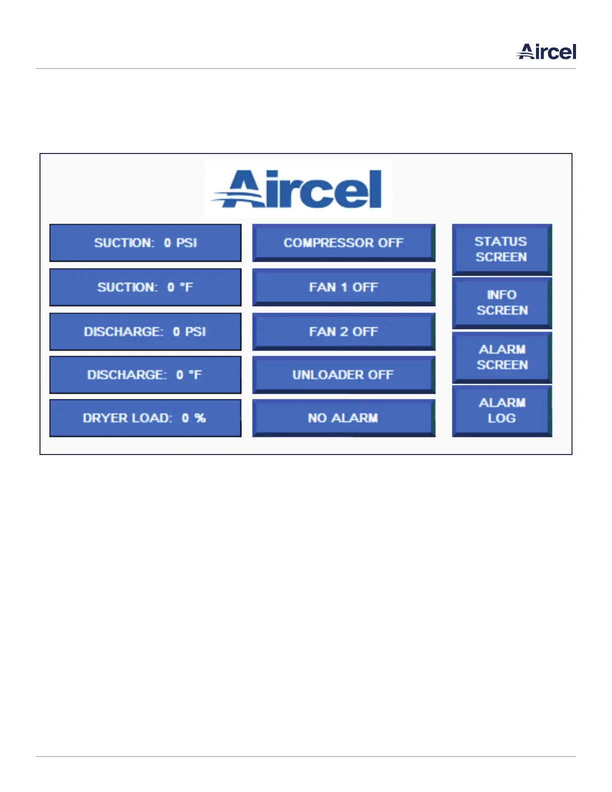 off/on status, fans off/on status, unloader off/on status as