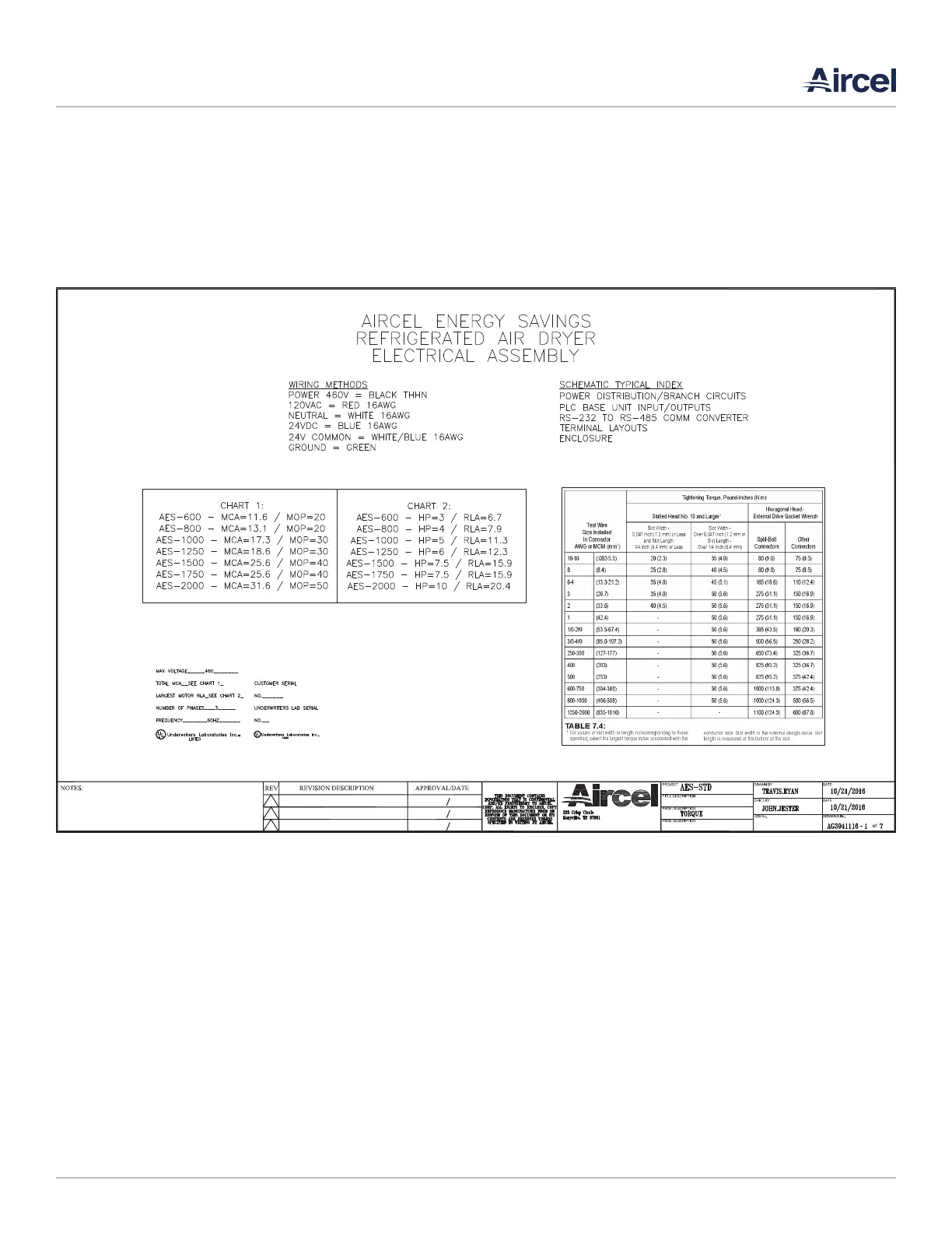 B.3 AES Series - Air-Cooled Models 600 - 2,000 scfm; 3 Phase, 460 Volt, 60 Hz