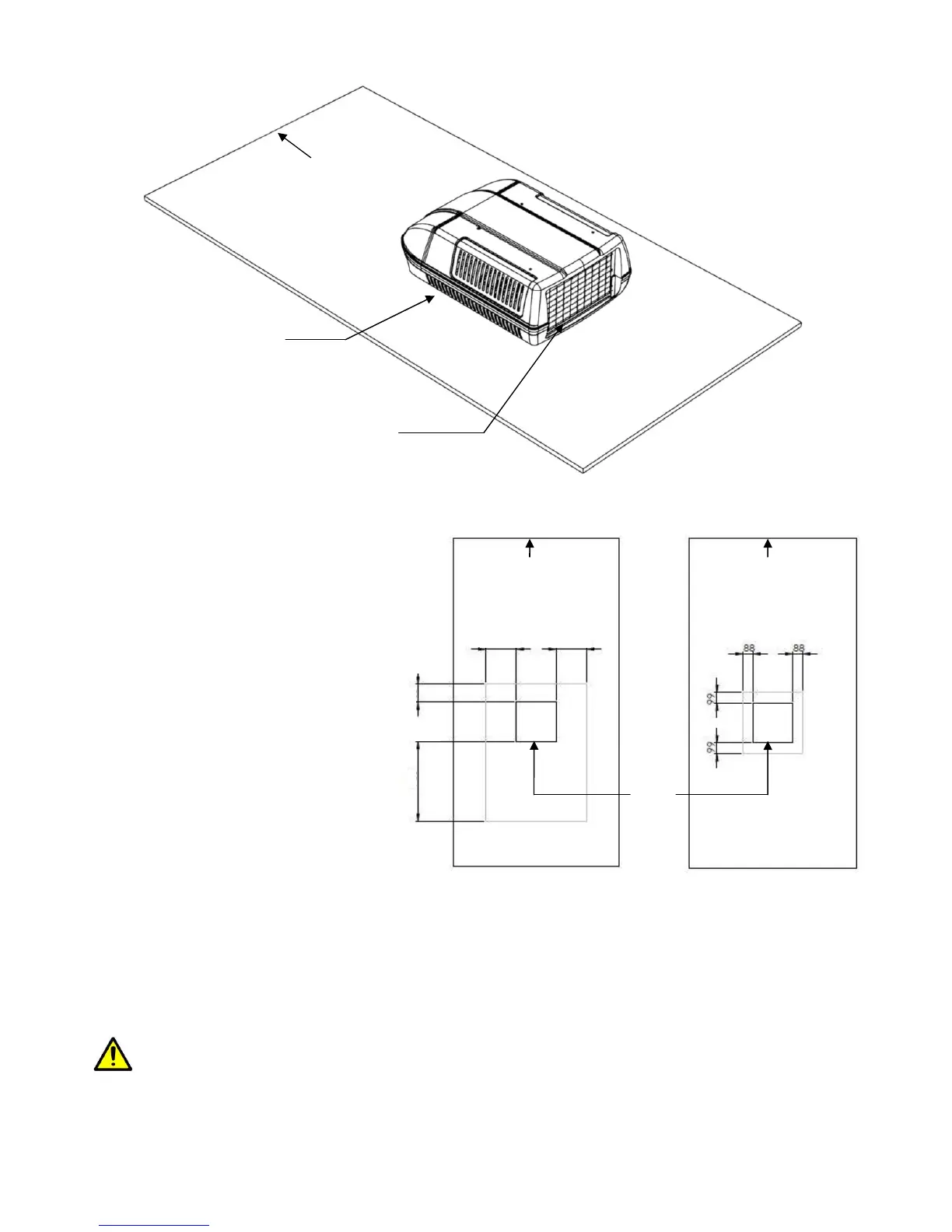 Fig 2: The foot print of the rooftop unit, and the plenum, measured from the hole