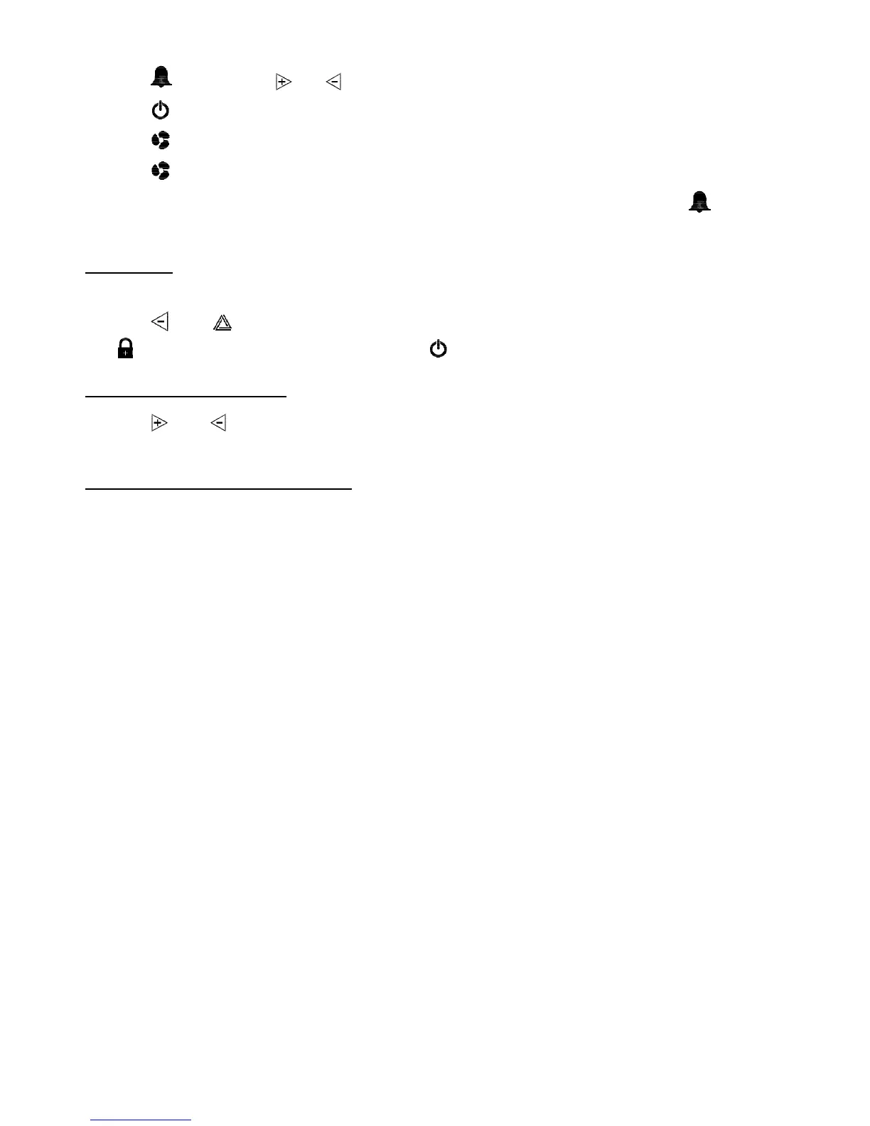 Press “ ” and “ ” for 3 seconds to activate button lock, to unlock repeat the procedure