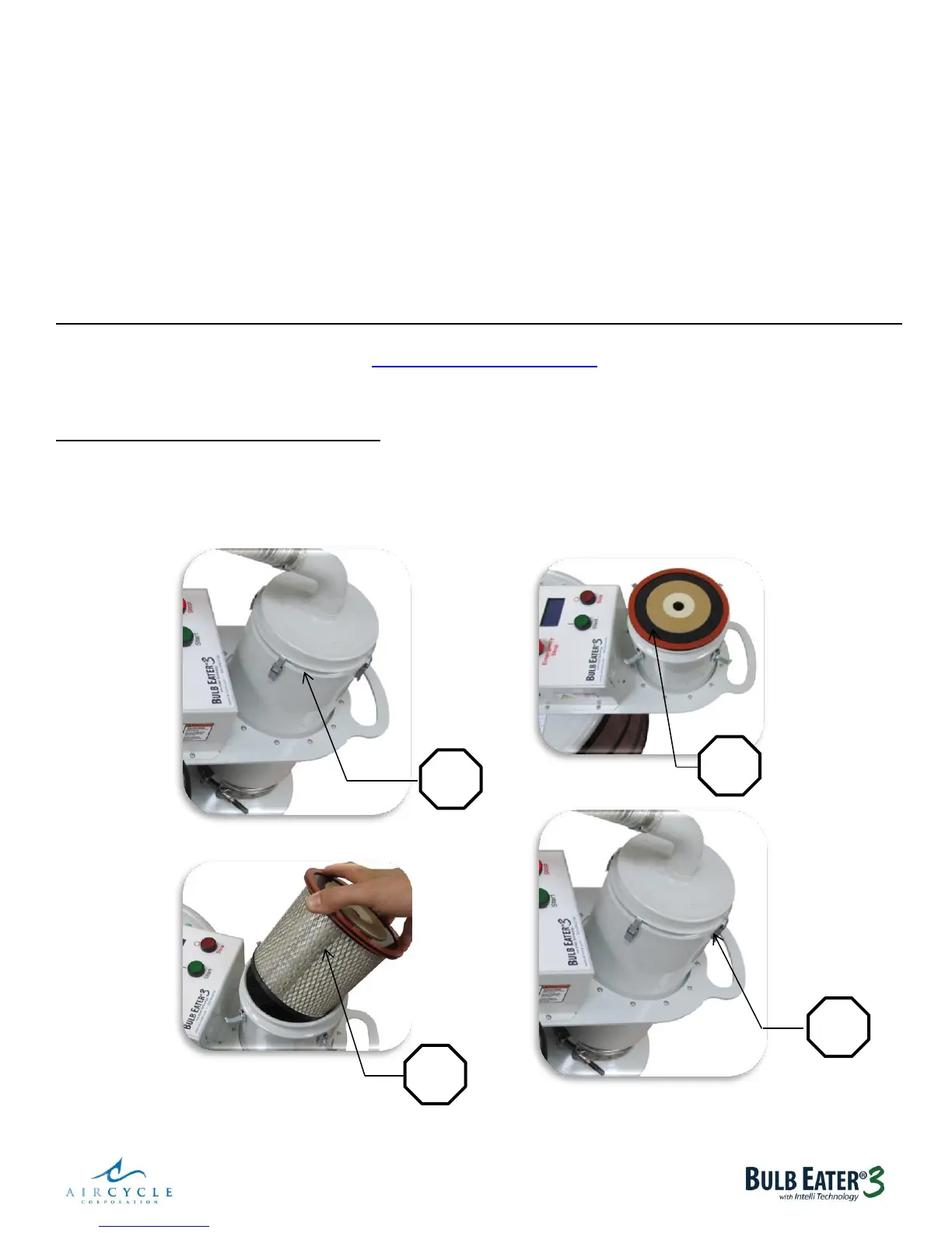• The operator must wear safety glasses and gloves when changing any of the three Bulb Eater