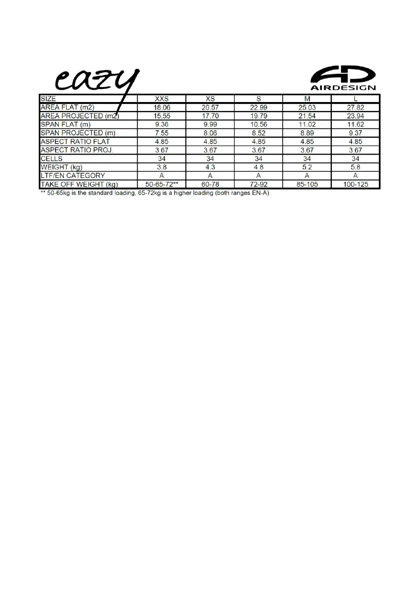 The EAZY2 sits well within the limits of the LTF/EN-A class as proven by the certification test
