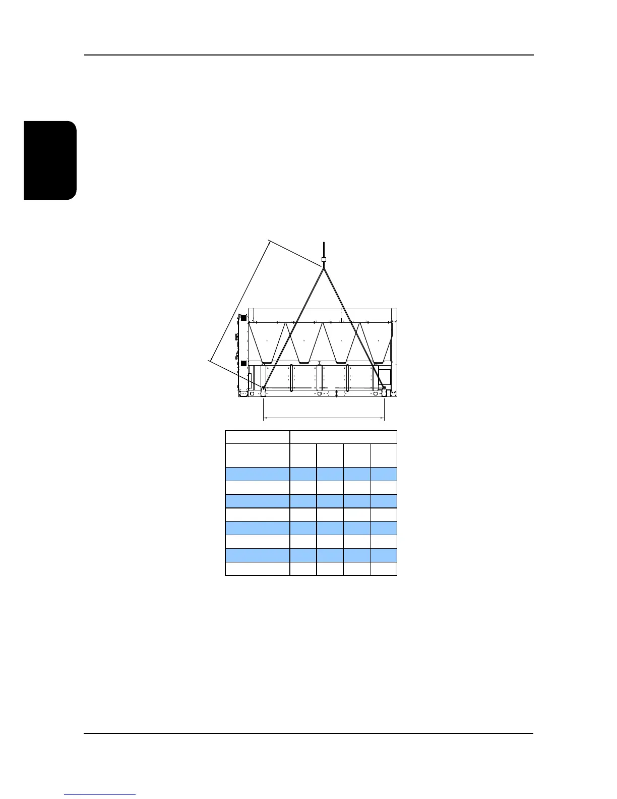 ● Use the appropriate spreader bars/lifting slings (provided by others) with the eye bolts/lugs provided.