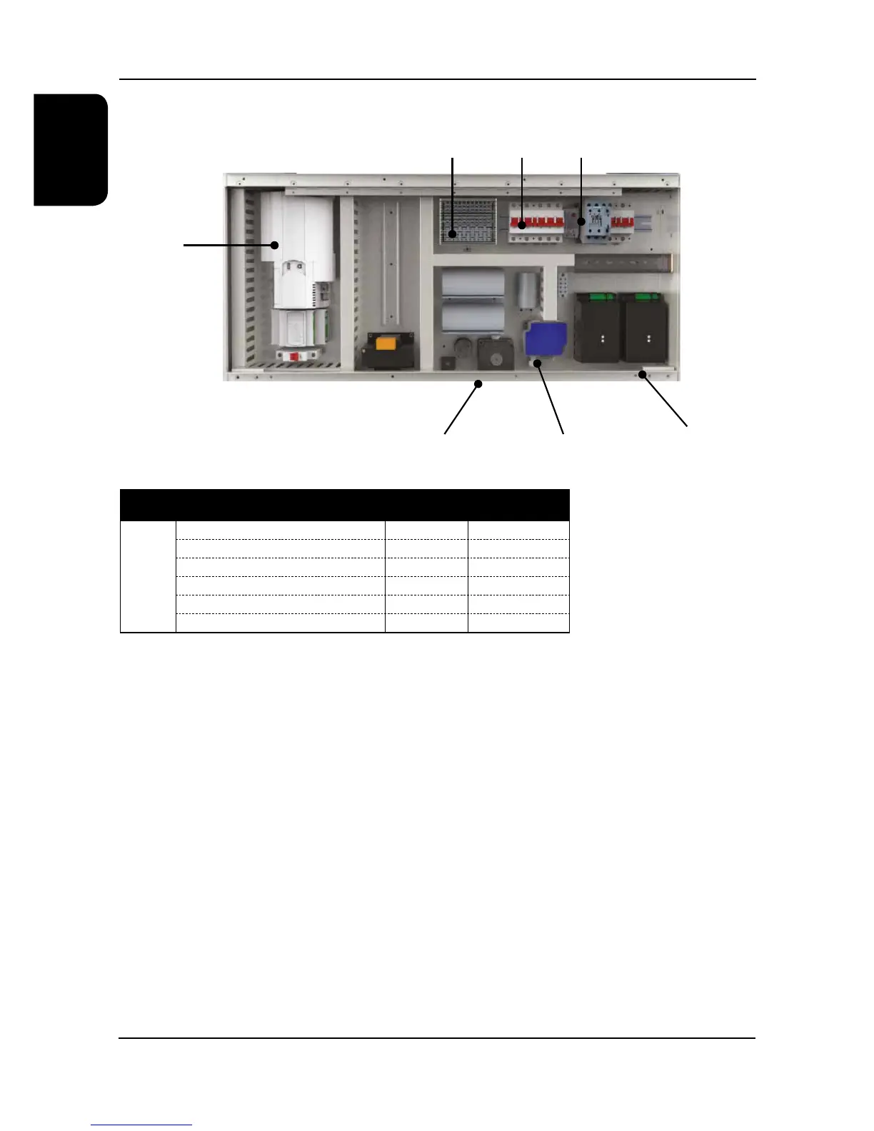 for a common alarm and mains and inter-connecting terminals. The panel is situated within the cabinet and can be