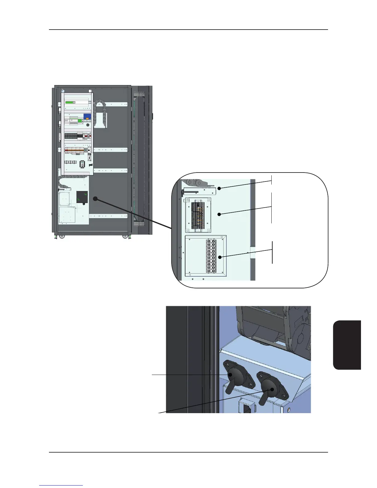 The electrical services enter the unit through either the base or the roof of the unit. Termination is via a terminal box at