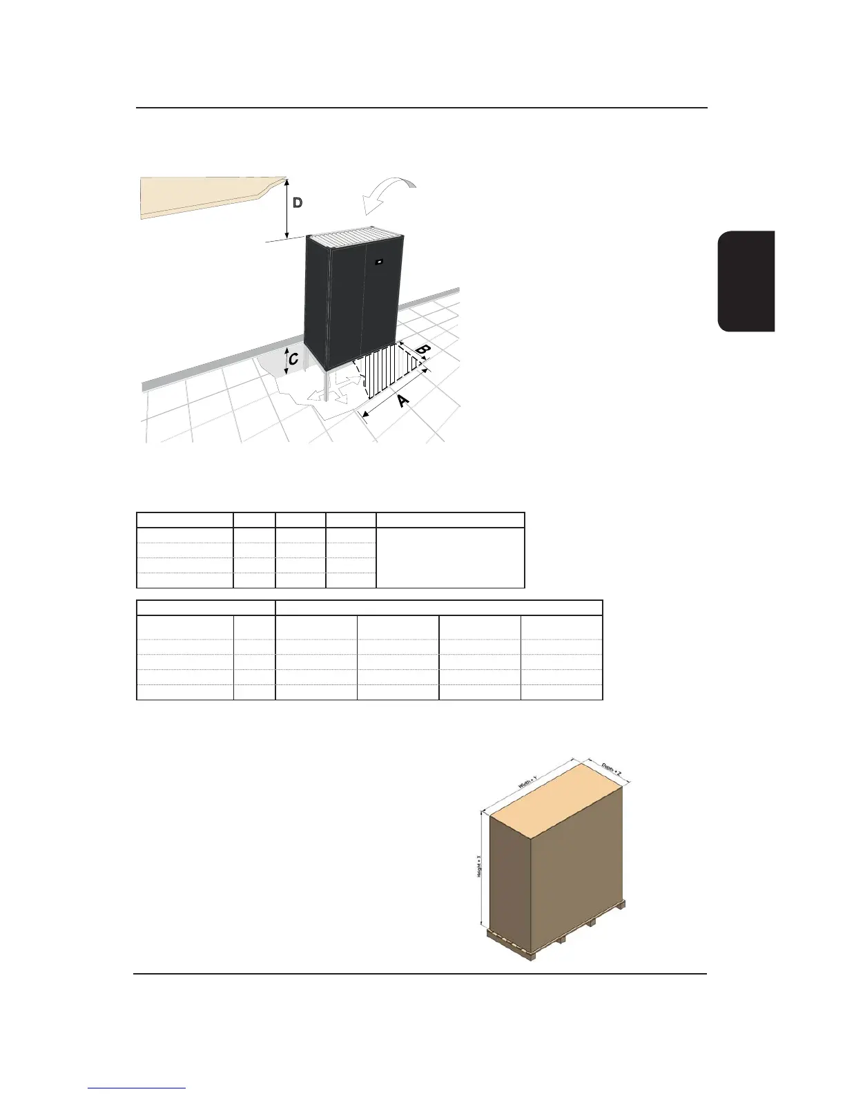 (2) Shaded area indicates minimum service and maintenance requirements. The unit must be installed with allowance for carpet tile clearance.