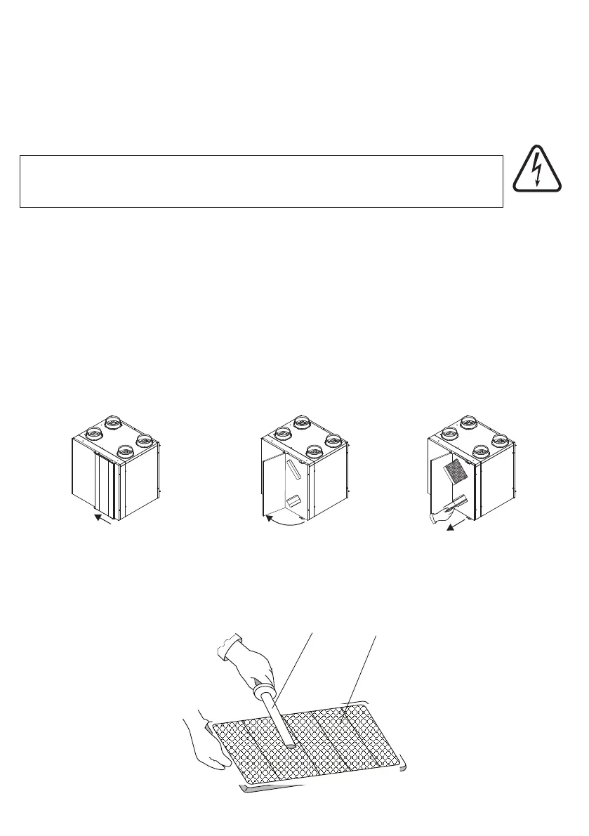 course filters. The filters should always be kept in place when the ventilation unit is in operation.