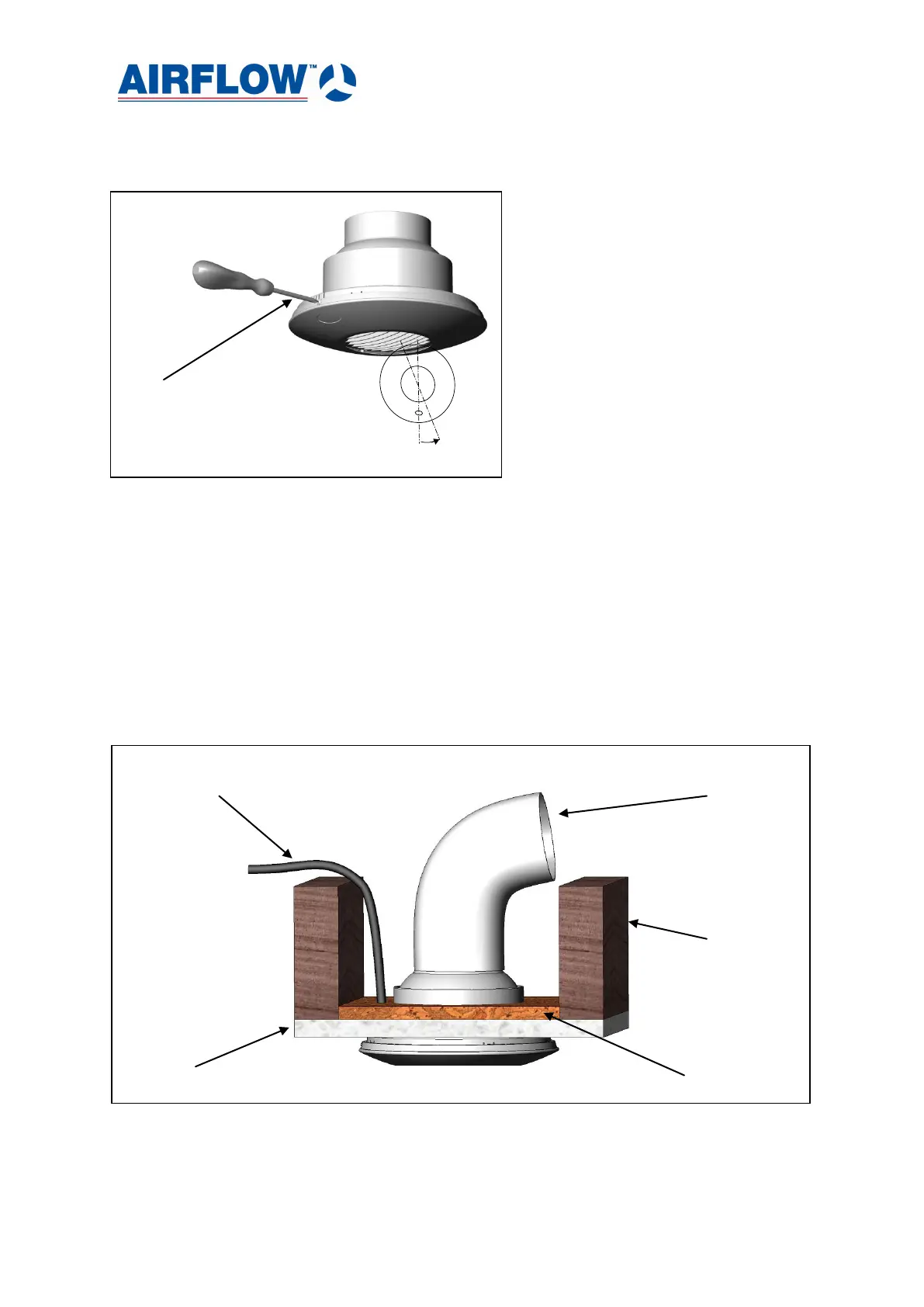 When recessing fans in the ceiling, a plywood support (min 18mm thick) should be mounted