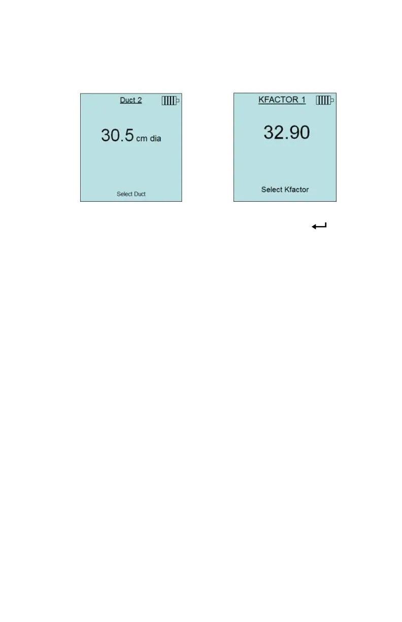 accept, or enter the Select Duct or Select Kfactor menu to choose a