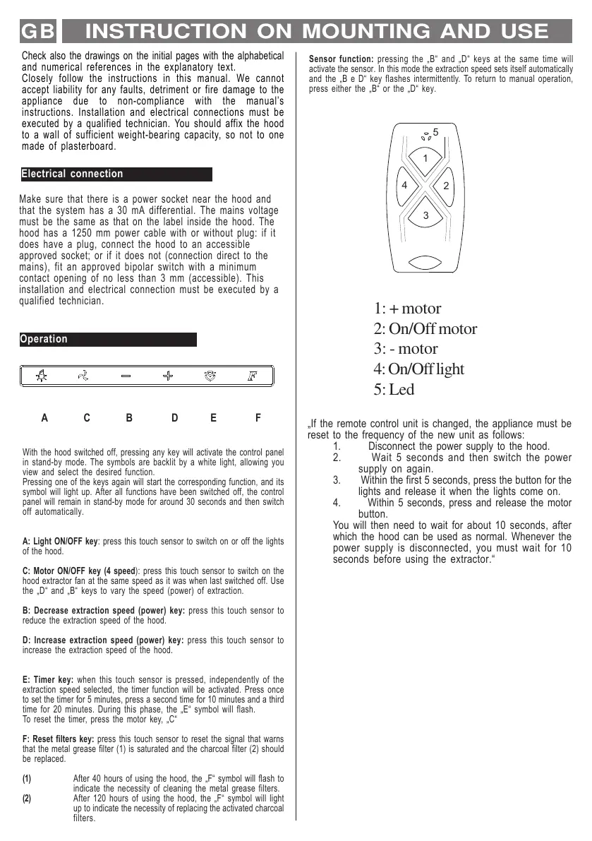 (1) After 40 hours of using the hood, the „F“ symbol will flash to